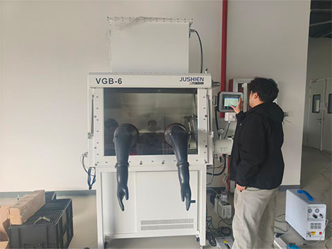 本次交付项目由九晟科技销售部刘经理、小李,技术部张工及维护部张工组成专项服务团队全程负责。海康威视新厂区场地布局尚在完善阶段,安装环境复杂,施工协调难度较大。专项团队提前勘察现场、制定详细安装方案,在施工过程中克服场地受限、设备搬运不便等多项挑战,经过两天紧张有序的安装、调试与检测,最终确保手套箱顺利投入使用。交付完成后,技术部张工与维护部张工共同为海康威视使用团队开展全方位培训,内容涵盖手套箱清洗与循环操作、系统运行与日常维护注意事项、再生系统工作原理与实操流程等核心环节,通过理论讲解与现场演示相结合的方式,确保用户快速掌握设备使用技巧。
